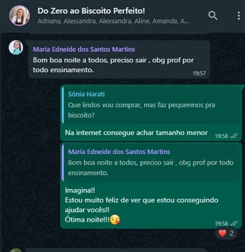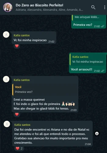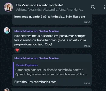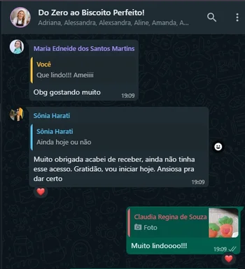 Através do grupo VIP, tiramos dúvidas e trocamos experiências com várias outras alunas, além de disponibilizar um canal oficial de suporte via WhatsApp, onde as alunas podem tirar dúvidas sobre as aulas e também resolver problemas de acesso ao conteúdo.